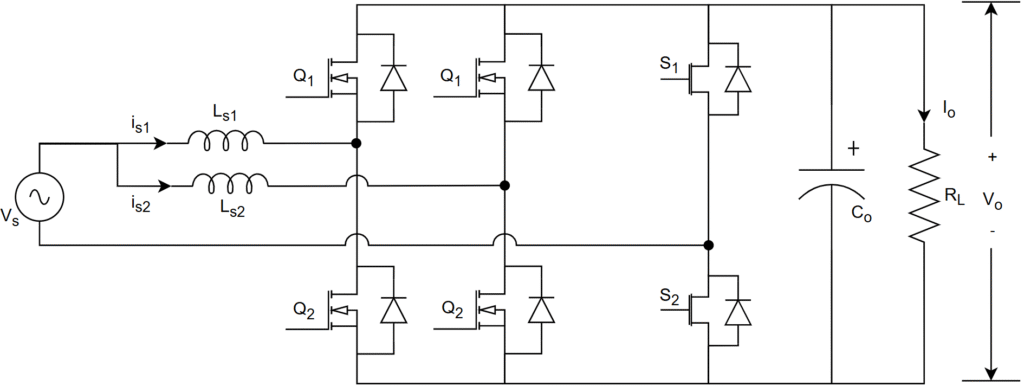 It is a modification of previous topology. Just replaces the diode leg with a low-frequency switch leg that means this topology is combination of one high-frequency (HF) switching leg and one low-frequency (LF) switching leg.