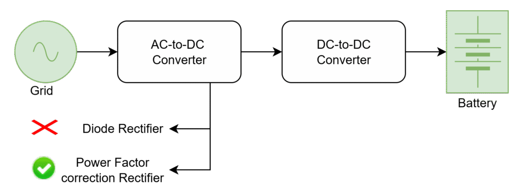 There are many topologies which can be used for power factor improvement in the AC-DC converter stage of electric vehicle chargers
