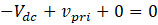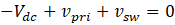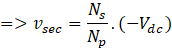 Since switch is closed, the entire power supply voltage () appears across primary winding/magnetizing inductance. Therefore, secondary winding voltage is negative (