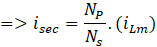Therefore, => Diode (D) is reverse biased and does not conduct. Acts like open circuit. That means secondary/diode current is zero.
