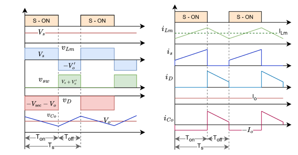 The waveforms of flyback converter in entire full cycle operation are as follows
