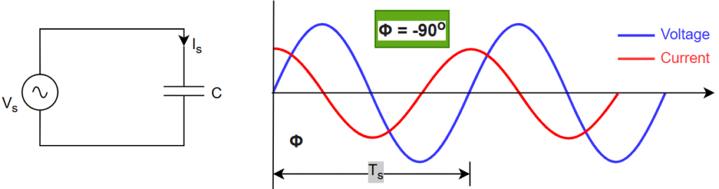 Connected load to the grid is pure capacitive nature, See below Fig.