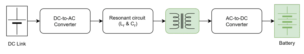 It is combination of full-bridge inverter (DC-AC), high-frequency transformer, and full-bridge rectifier (AC-DC) with diodes.