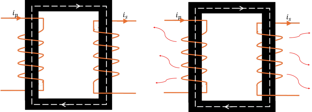- Some of flux in the primary also links with other iron/steel components in the circuit. Hence it induce local EMF. Then current flows in those parts due to induced EMF. This local current does not contribute anything to load power. Only dissipates in air in form of heat. This energy loss is called eddy current loss in the transformer.
