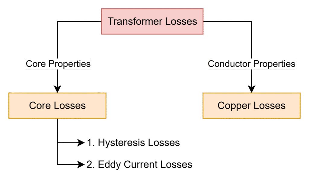 Core losses are depends on the only core properties and these are sub-divided into Hysterisis and eddy current losses.