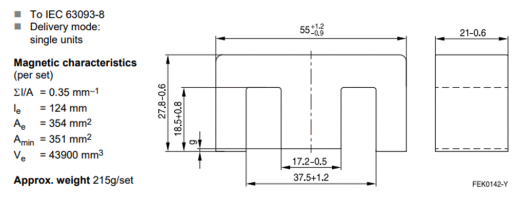 Core shapeWindow Area (AW)Cross-sectional Area (AE)